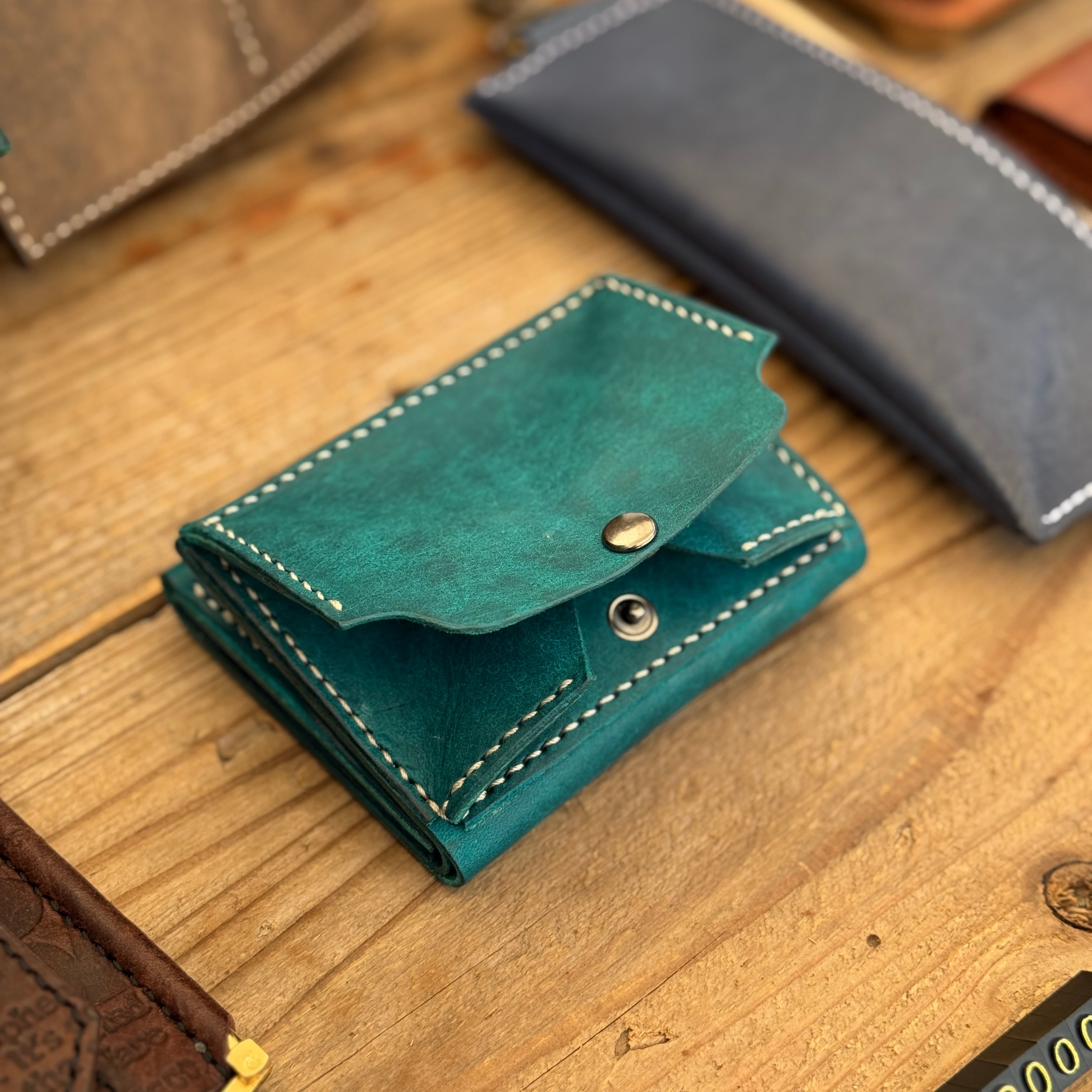 イベント出店時に撮影した一点です。 実際にお手に取ってくださった方々からも 「素敵な色」「特別感がある」と 嬉しいお声をいただきました。 使用しているのは 【イタリアンレザー MARGOT】 使うほどに艶が増し、深い味わいを楽しめます。 すべて手縫い・手仕上げで制作しています。 革の表情や色味には一点ごとに個体差がございます。 世界にひとつだけの風合いをお楽しみください。 【仕様】 ・素材:イタリアンレザー(MARGOT) ・サイズ:約10cm × 8cm ・カラー:ターコイズ 【備考】 イベント時に展示していた作品です。 小さな擦れなどがある場合がございます。 ご理解の上お求めくださいませ。 【発送について】 ご入金確認後、2日〜3日以内に発送いたします。